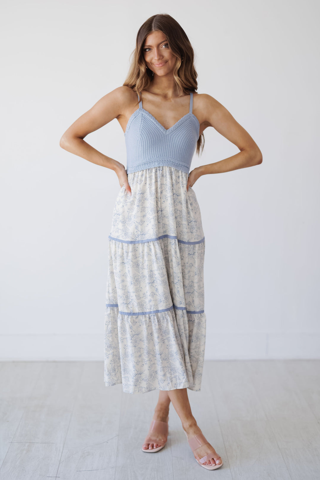 Ethnic Floral Print Back Smocked Loose Midi Dress