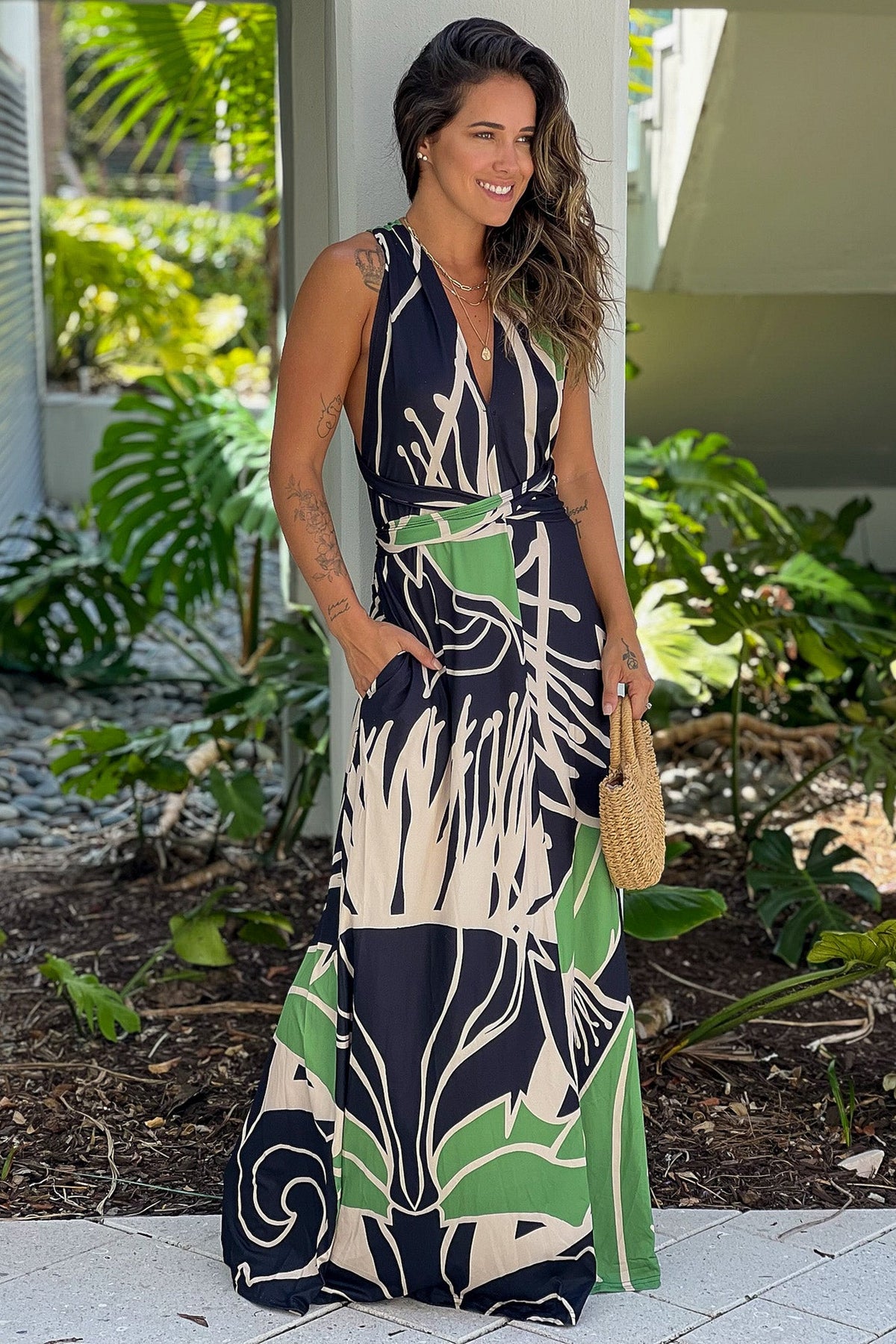 OMG, we absolutely love this adorable Black And Green Printed Maxi Dress With Pockets that is now available at our online dress shop! This versatile casual maxi featuring awesome print and cute pockets is a true must have for summer!