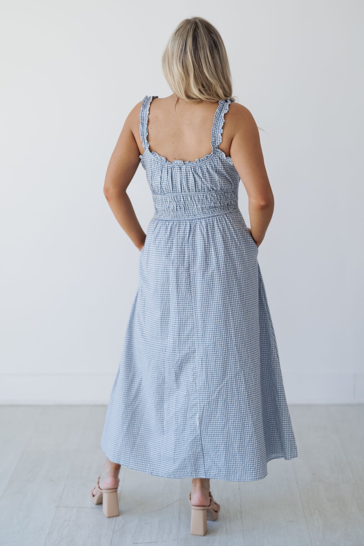 Timeless charm meets effortless elegance in our "Kimber Dress!" Featuring a classic gingham print in soft, breathable fabric, this dress is perfect for warm days and breezy evenings. The flattering midi length adds a touch of sophistication, while the lightweight design and smocked bust ensures all-day comfort. Whether you're strolling through a farmers' market, enjoying a picnic, or heading to brunch, this dress is your go-to for a fresh and feminine look!