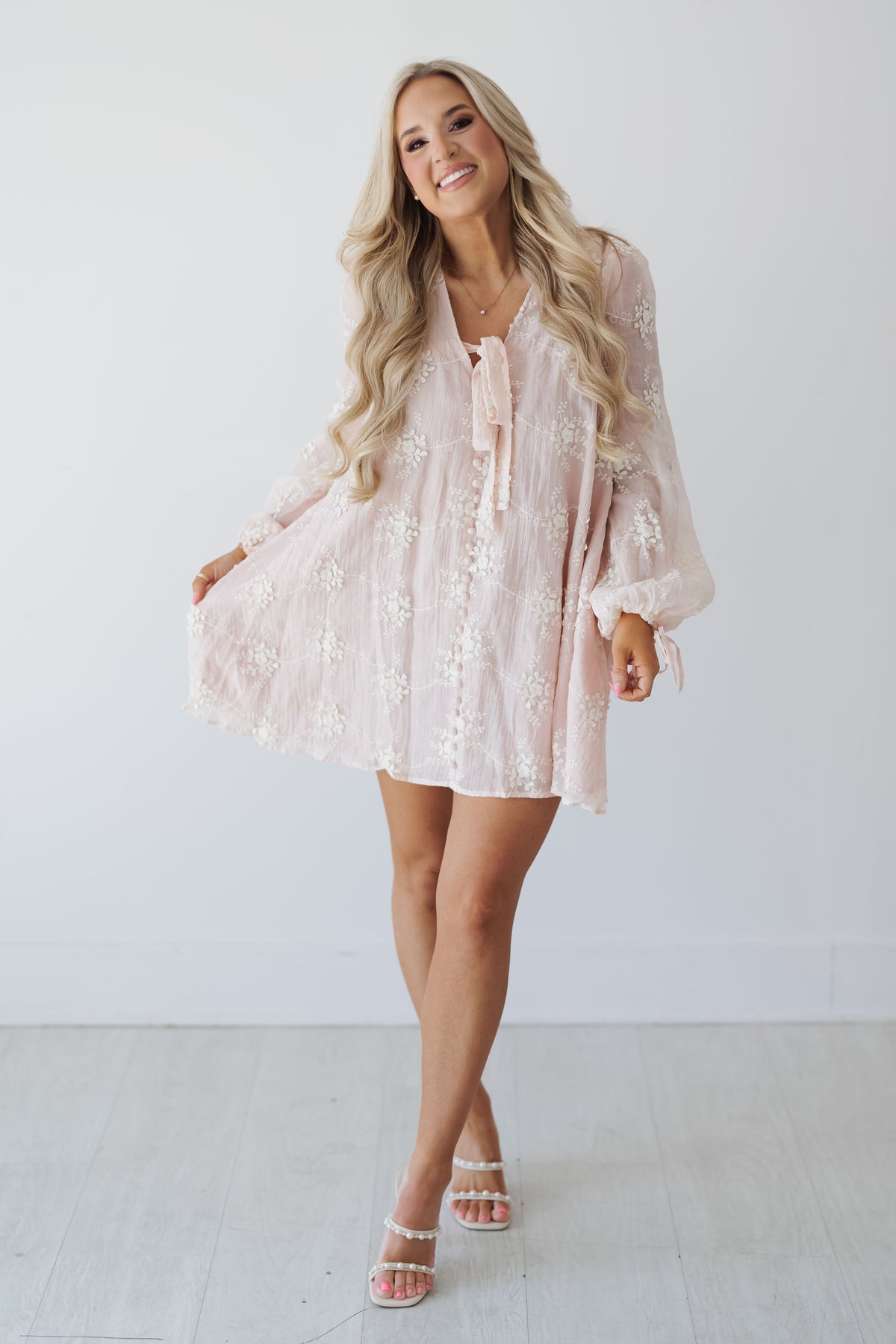 Prepare to turn heads in the pink colored "Maisy Dress!" An effortlessly charming option for church or date night, this ensemble is so elevated and versatile! Boasting sheer balloon sleeves, embroidered florals, and a v-neckline. To style, pair with heels or boots to complete the look!