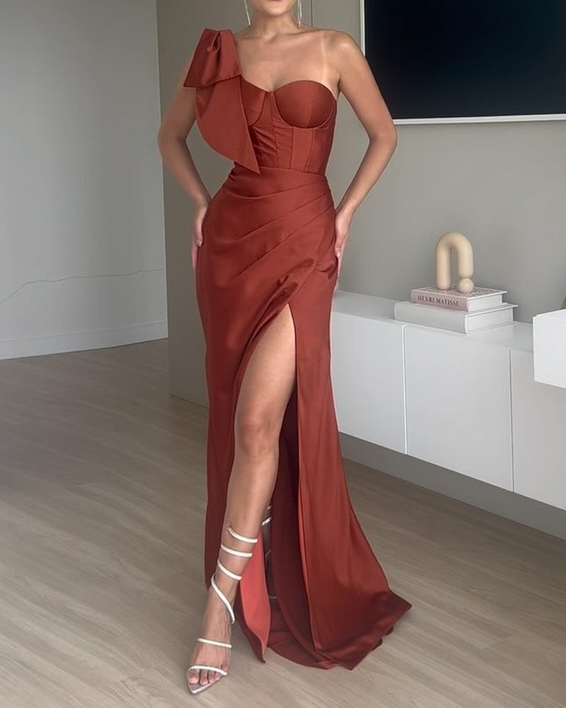| Product Name | One shoulder solid color elegant slit dress | |||||||