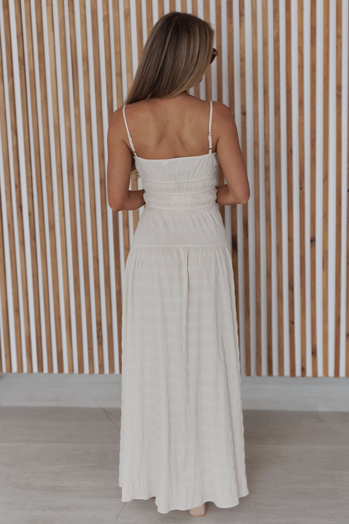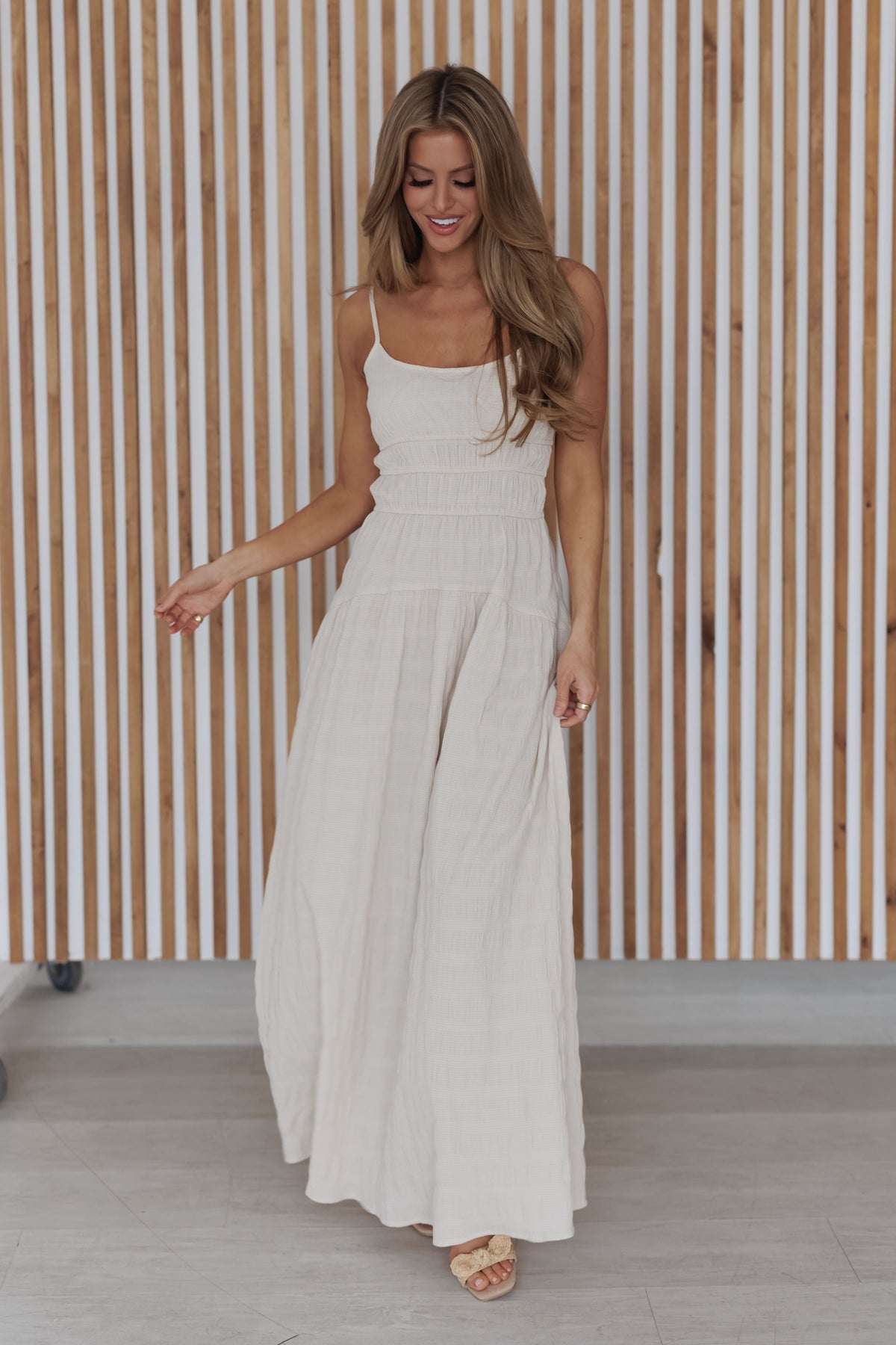 Our new "Paige Dress" is a total must have piece! Boasting a neutral ivory color with gingham print, adjustable straps, and a smocked waistline, this dress can be styled for any occasion! The neutral color allows it to be styled up with heels or down with boots for a concert!
