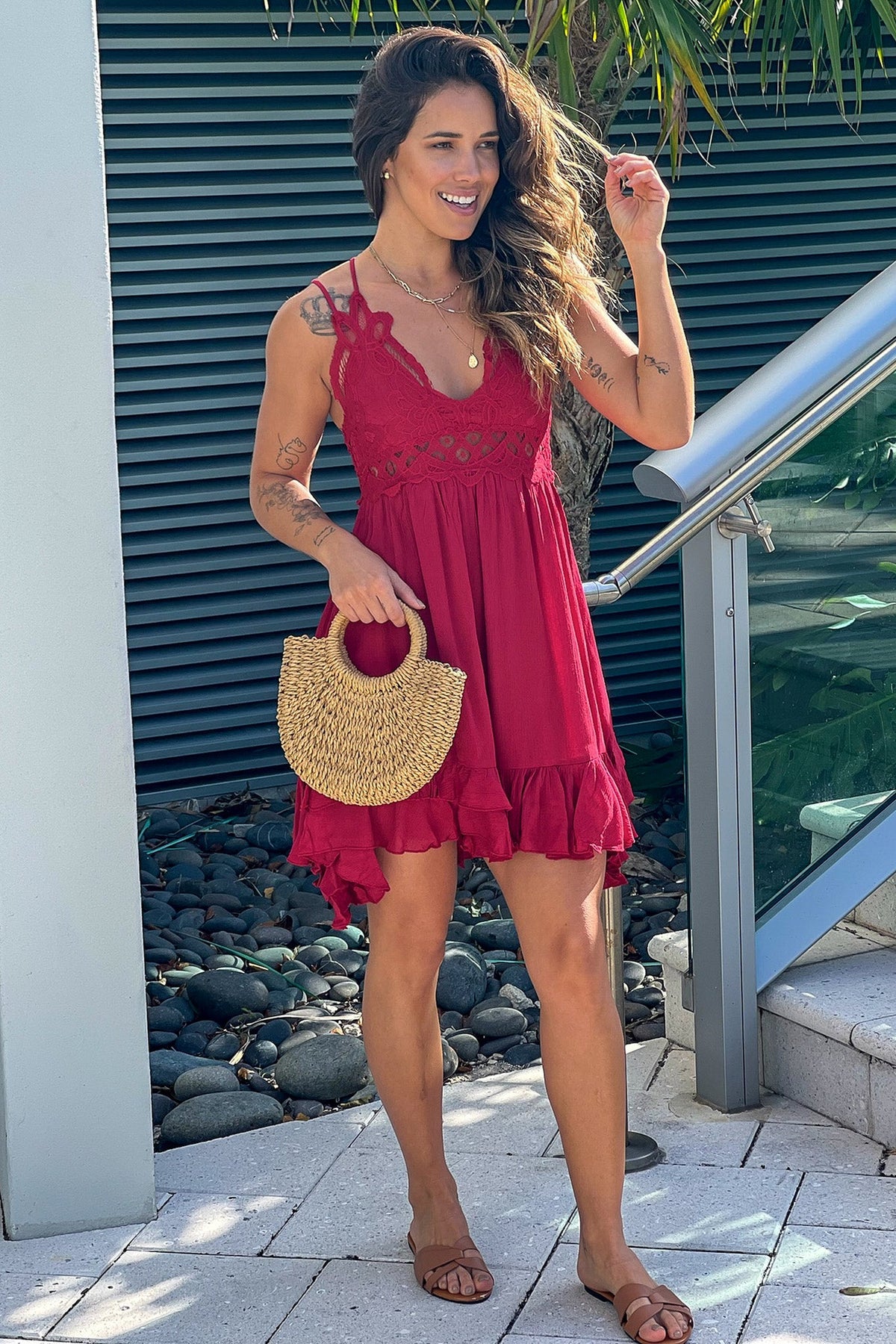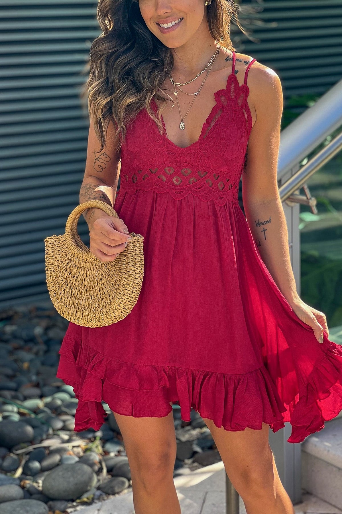 WOW, check out this adorable Ruby Crochet Top Short Dress with Criss Cross Back that is perfect for this summer season! This pretty short dress features a beautiful crochet top and a criss cross back!