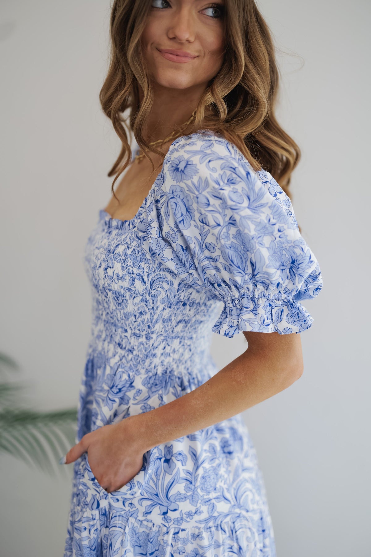 Embrace feminine charm in the “Tamara Dress!” This dainty number features so many head turning details that makes this dress a must have! Boasting short puffed sleeves, a fully smocked bust and back, and the most stunning blue floral print! Pack this in your suitcase for any tropical vacation with a pair of sandals and you have the perfect elevated dinner look!