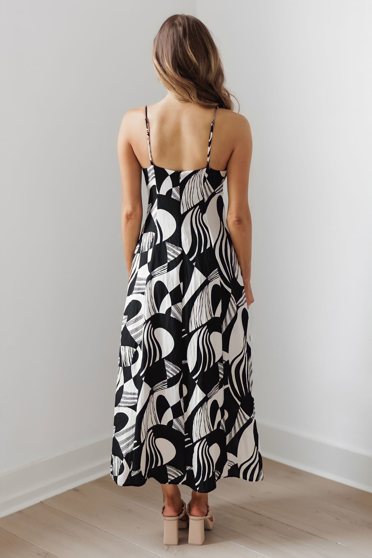 Turn heads with our "Veronica Dress,"  a perfect blend of effortless style and modern sophistication! Featuring a flattering V-neckline and sleek, thin straps this dress offers a chic yet comfortable fit for any occasion. Crafted from lightweight, flowy fabric, its bold abstract print makes a statement while ensuring versatility—dress it up with heels and accessories or keep it casual with sandals for a laid-back vibe!